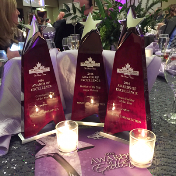 Minto Communities Canada honoured as Builder of the Year large volume and small volume respectively, for their high standards of excellence in everything from sales to construction and for increasing the industry’s overall image in the community. Minto additionally claimed the Green Builder of the Year award.