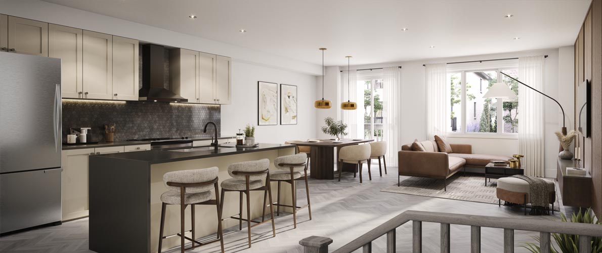 Park & Main offers both Traditional and Back-to-Back Townhomes with 3–6-bedroom floorplans, exquisitely crafted to cater to a spectrum of modern lifestyles. Available in both West Coast and Tudor style, these striking townhomes offer elevated features and finishes, sustainable components and innovative technologies. Come experience the epitome of timeless design with Park & Main.