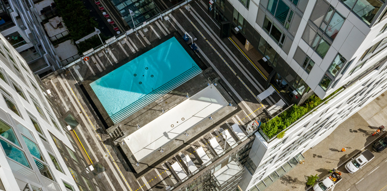 Leisure and recreation come together on the 9th floor. The Plunge Social, on the rooftop is perfect for spending long summer afternoons by the poolside. Invite friends and family over for a celebration at The Plunge Bar. For all-season socializing the indoor Skyline Lounge and Poolside Lounge are ideal for hosting a dinner party overlooking the city below, or a great spot to chill out inside while still being connected to the party outdoors. Immerse yourself in the moment. The seamless indoor-outdoor Plunge zone takes socializing to a whole new level. The water, the greenery, the ambience — all combine to offer a perfect backdrop for creating lasting memories.