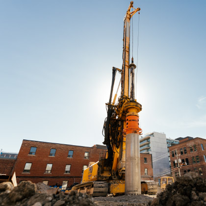 <p>The first stage of construction has begun at 123 Portland. This initial stage - known as shoring - drills around the site perimeter, and builds a temporary support structure which will support the next steps in the building and excavation process.</p>