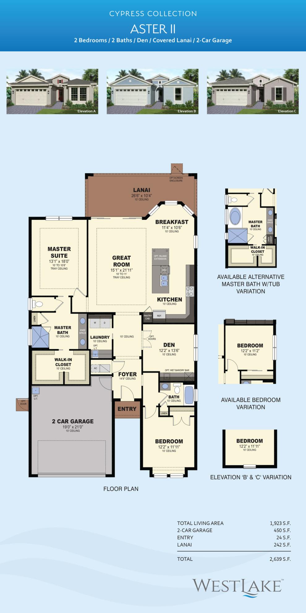 2 Bedrooms | 2 Bathrooms | 1,923 a/c square feet | 2,639 square feet | $499,990