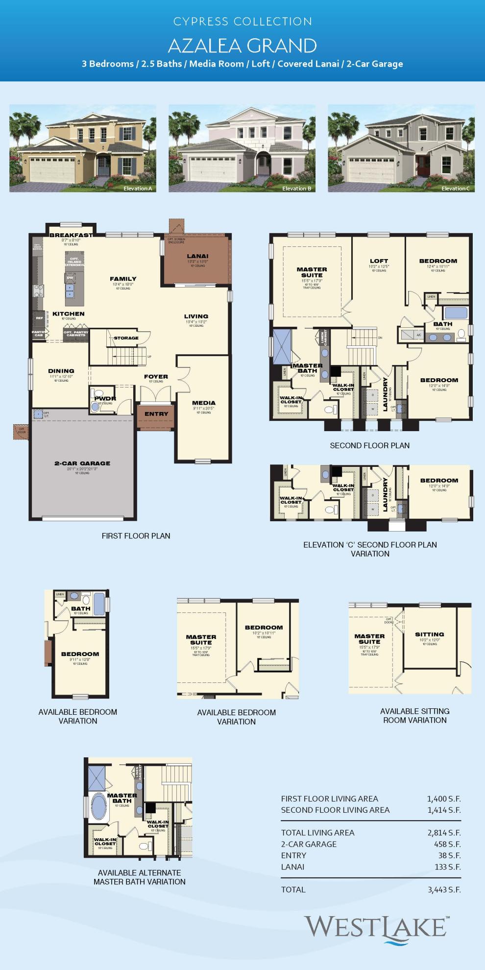 3 Bedrooms | 2+ Bathrooms | 2,814 a/c square feet | 3,443 square feet | $567,990