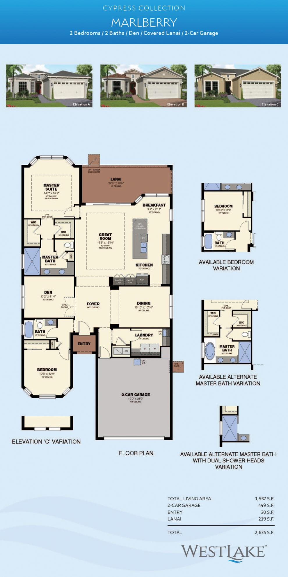 2 Bedrooms | 2 Bathrooms | 1,937 a/c square feet | 2,635 square feet | $502,990